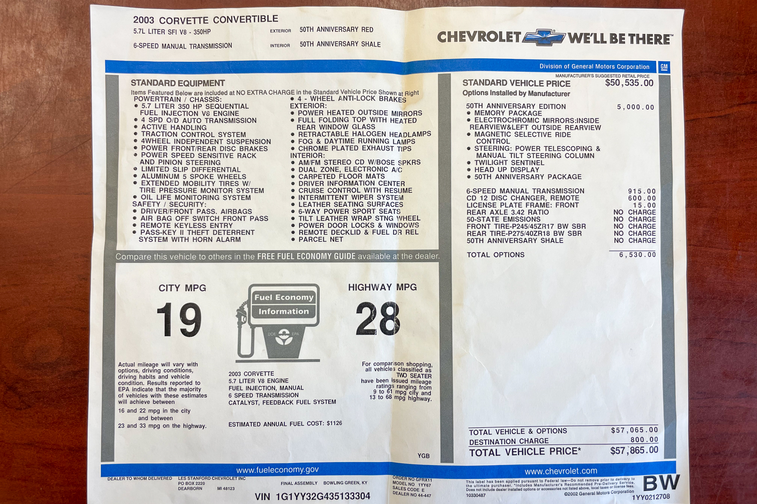2003 Chevrolet Corvette Convertible 50th Anniversary