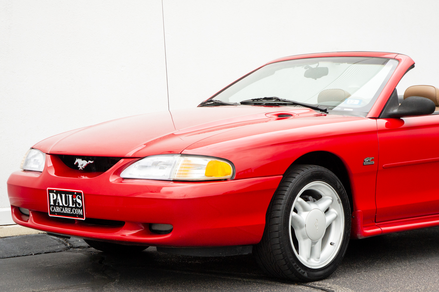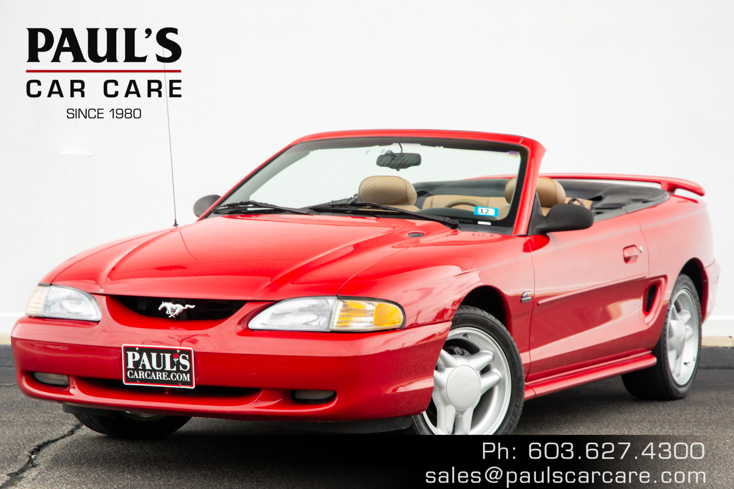 An American institution without breaking the bank, Ford's Mustang provides all the power and style of a modern muscle car with the practicality of four full sized seats. This GT Convertible has been owned and well cared for by the prior owner since 1996 and with NEW TIRES is ready to go. Finished in a sharp Vibrant Red over a classic Saddle Leather interior, this 'Stang is in great condition both inside and out. The 5.0L V8 churns out great power, and with the smooth automatic transmission this Mustang provides a fun, comfortable, and powerful driving experience. Recent maintenance includes NEW TIRES, A/C servicing, new convertible top, new radiator, and more! Fun in the sun is attainable with this stylish and fun Mustang GT Convertible, so don't hesitate and give us a call today! (603) 627-4300 Vehicle Options: Air Conditioning, Alloy Wheels, AM/FM Radio, ABS Brakes, CD Player, Climate Control, Cruise Control, Dual Air Bags, Fog Lights, Keyless Entry, Leather Upholstery, Power Brakes, Power Door Locks, Power Side Mirrors, Power Steering, Power Windows, Reclining Seats, Tilt Steering, Traction Control, Powered Convertible Top If you are interested in purchasing this vehicle, send an email to sales@paulscarcare.com, call 603-627-4300, or fill out our vehicle interest form.